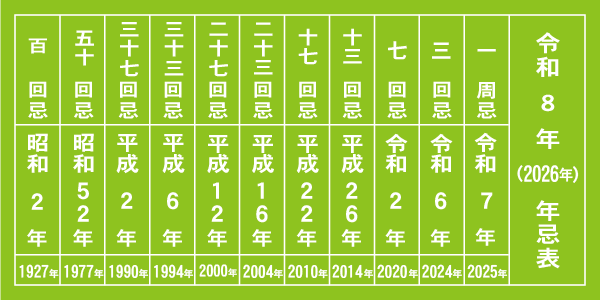 令和8年 2026年 年回忌法要早見表(年忌表)